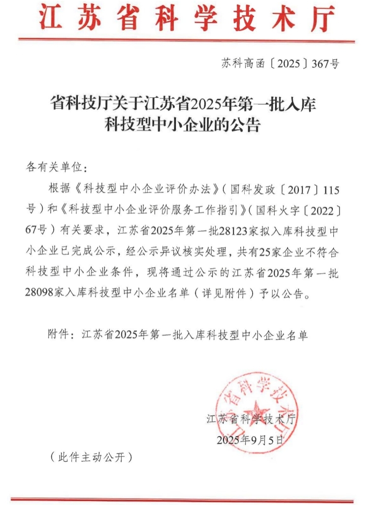 | 公司成功通过2025年全国科技型中小企业认定作者:admin 来源: 日期:2025-9-23 17:26:15 人气: